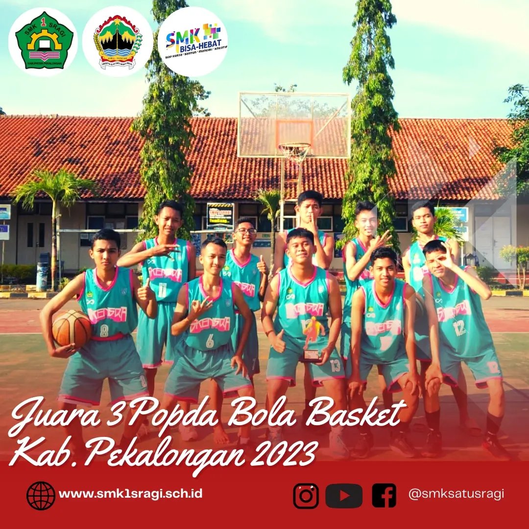 Team Bola Basket Putra SMK Negeri 1 Sragi meraih juara 3 pada Popda Kabupaten Pekalongan Tahun 2023.